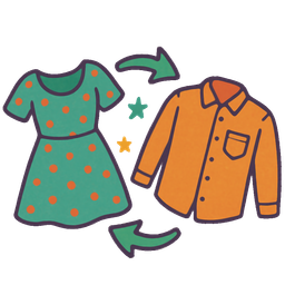 Dein Kleiderschrank braucht Abwechslung? Mitnehmen: Tausch heißt nicht unbedingt Handel. Um bei unserem kostenlosen Kleidertausch fündig zu werden, brauchst du nichts mitzubringen! Schenke gut erhaltener